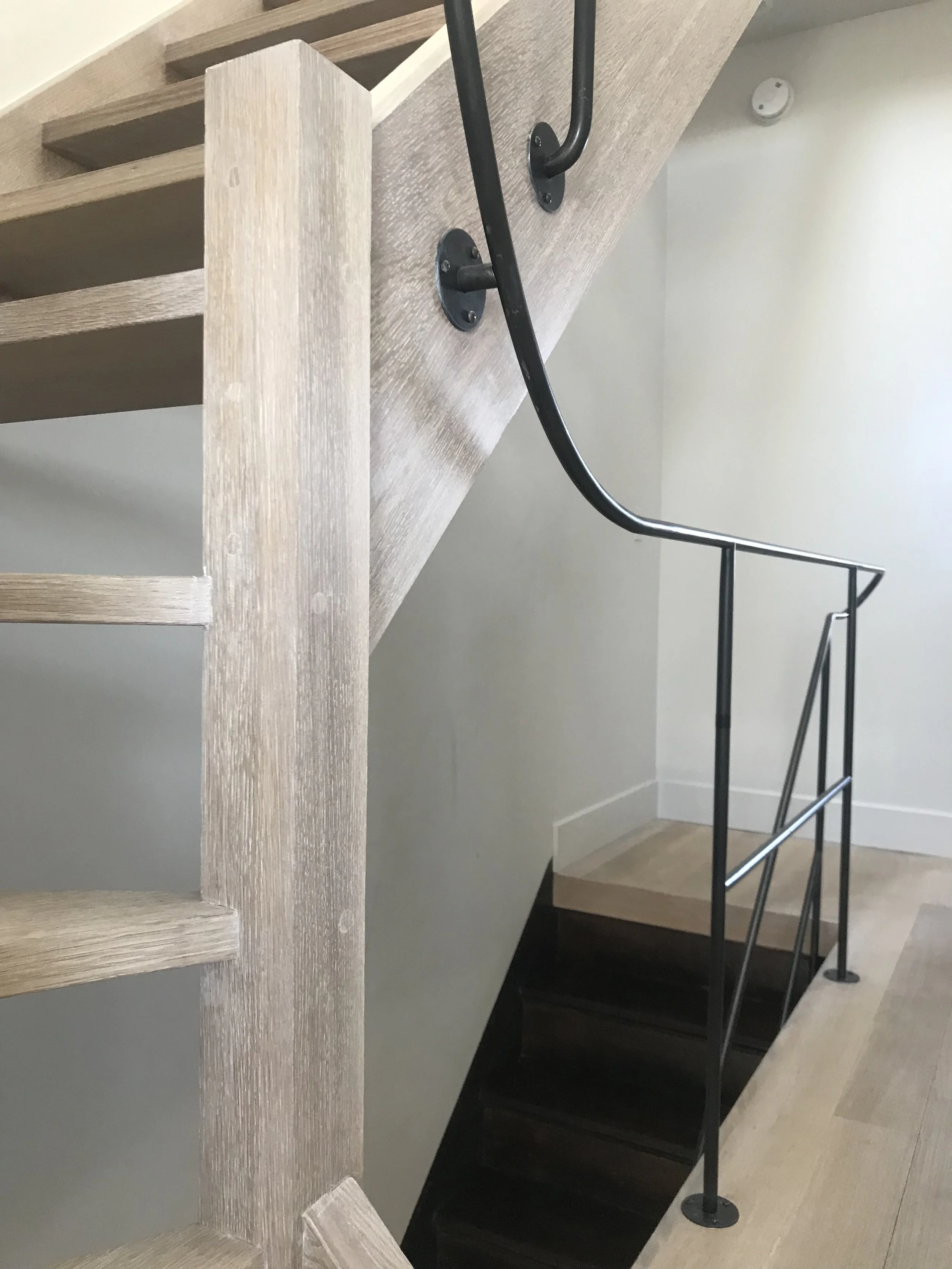 We fabricated a handrailing for a residential project on Coffey Street in Red Hook, Brooklyn. Made from round steel stock with a blackened patina finish, the seamless design features playful, elongated curves that connect both floors harmoniously.